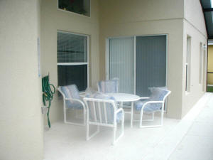 safety screen, quaint covered lanai with table, chairs and loungers.