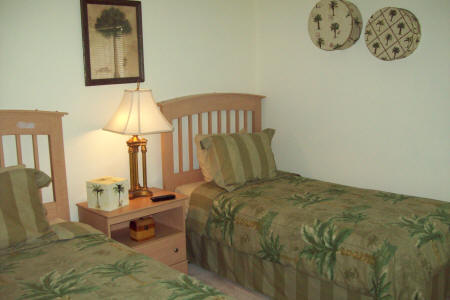 Florida palms theme and flat screen HDTV. This room shares the