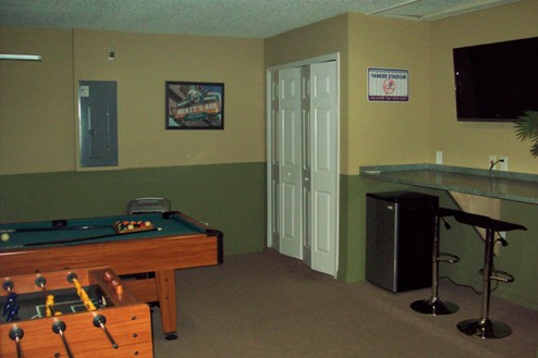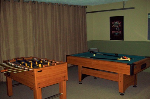 area and features a pool table, foosball table and Flat screen TV.