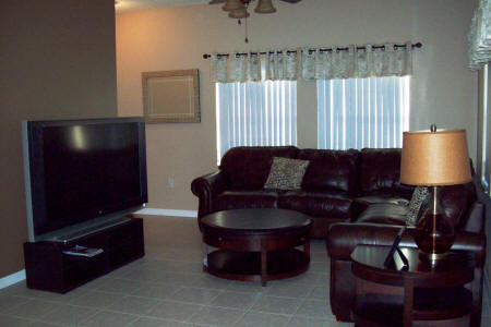 leather sectional sofa Large TV, DVD. The adjacent dining area with