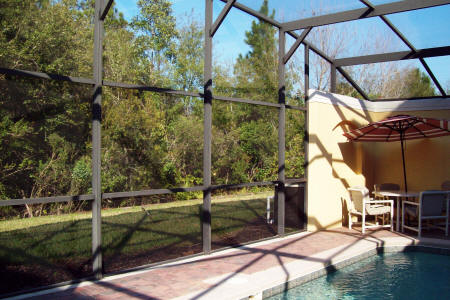 table and chairs, overlooks the pool and deck area with pool