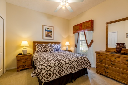 Also on the ground floor is the first bedroom with Queen size bed and cable TV, with adjacent bathroom with shower, vanity and toilet.