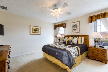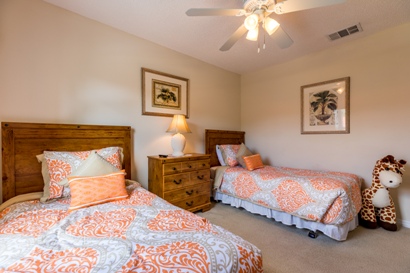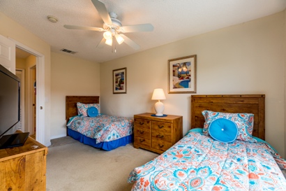 The third bedroom has twin sized beds with TV. The fourth bedroom