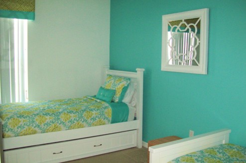 Pull-out trundle style beds and the vibrant fourth bedroom