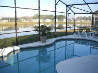 The beautiful pool and deck area features a covered lanai, pool loungers, table & chairs for outdoor dining and comfortable seating to relax in and enjoy the beautiful lake view.