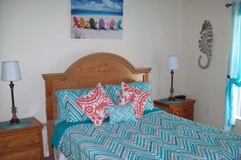 The second bedroom is a brightly decorated, Aquatic themed Queen size room with cable TV.