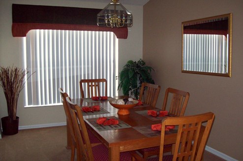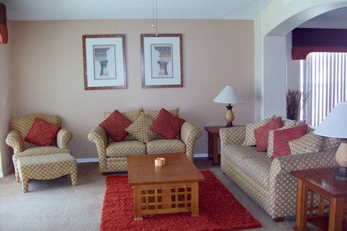 The tastefully decorated lounge overlooking the pool area features comfortable sofas and arm chair with foot stool, 42" LCD Flat screen TV & DVD with an adjacent dining room elegantly decorated with table and chairs for formal dining.